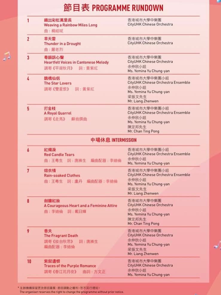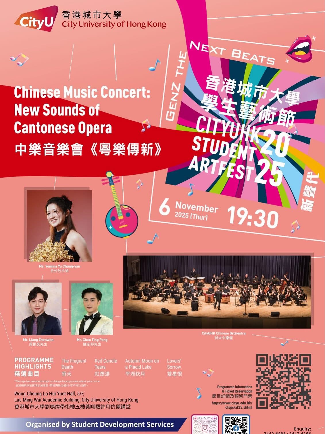 新作《粵韻訴心聲》及《鵲橋仙侶》對唱版於11月6日(四)於香港城市大學學生藝術節由余仲欣出演。