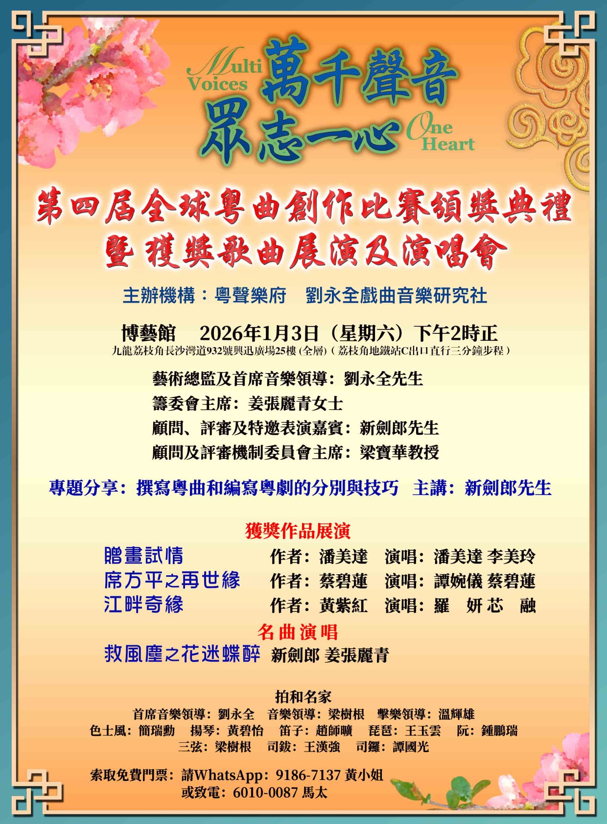新作《胡不歸之惜別妻房》獲「萬千聲音眾志一心」第四屆全球粵曲創作比賽金獎。