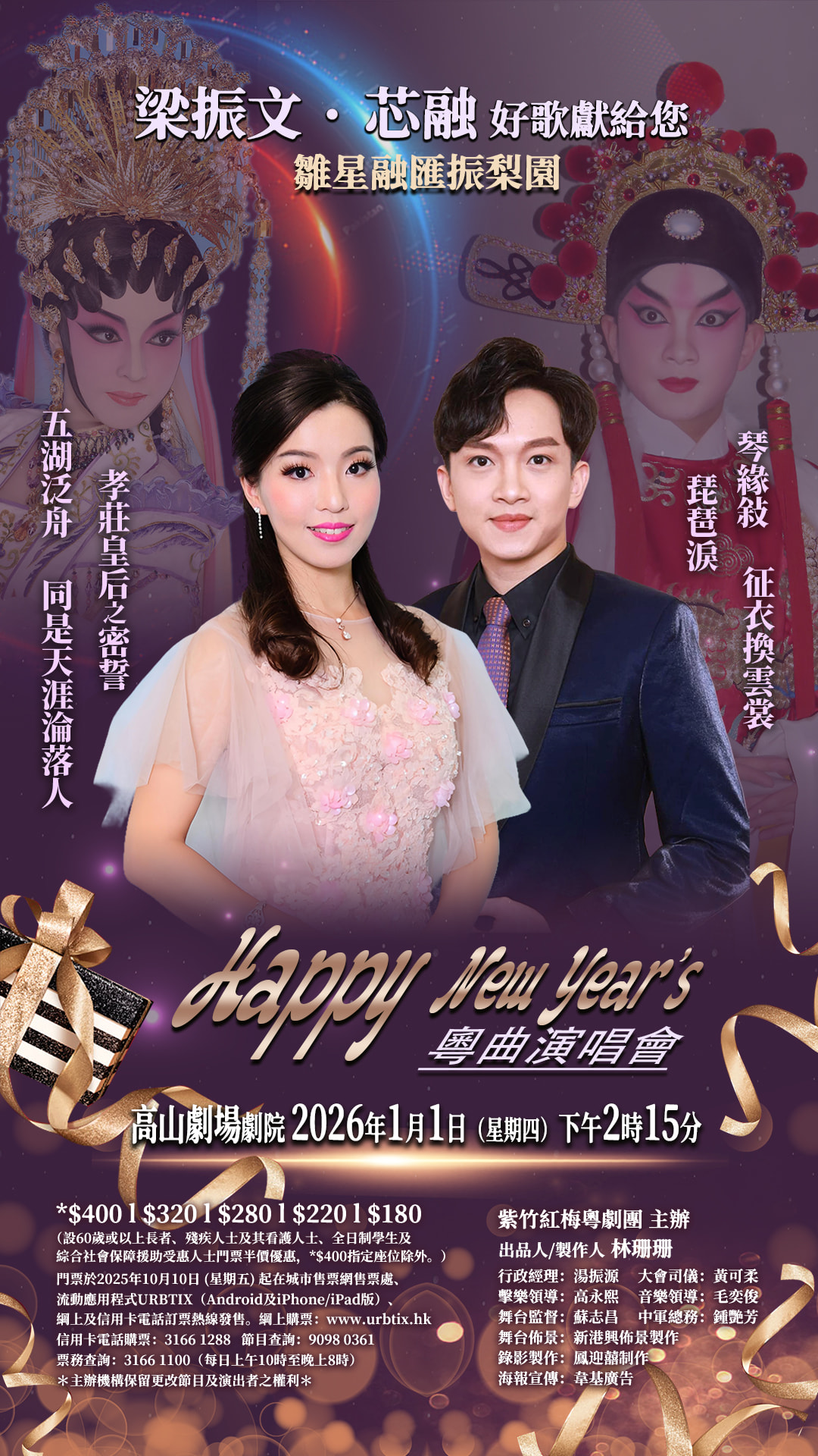 1月1日,梁振文,芯融將會在高山劇場演唱琵琶淚。